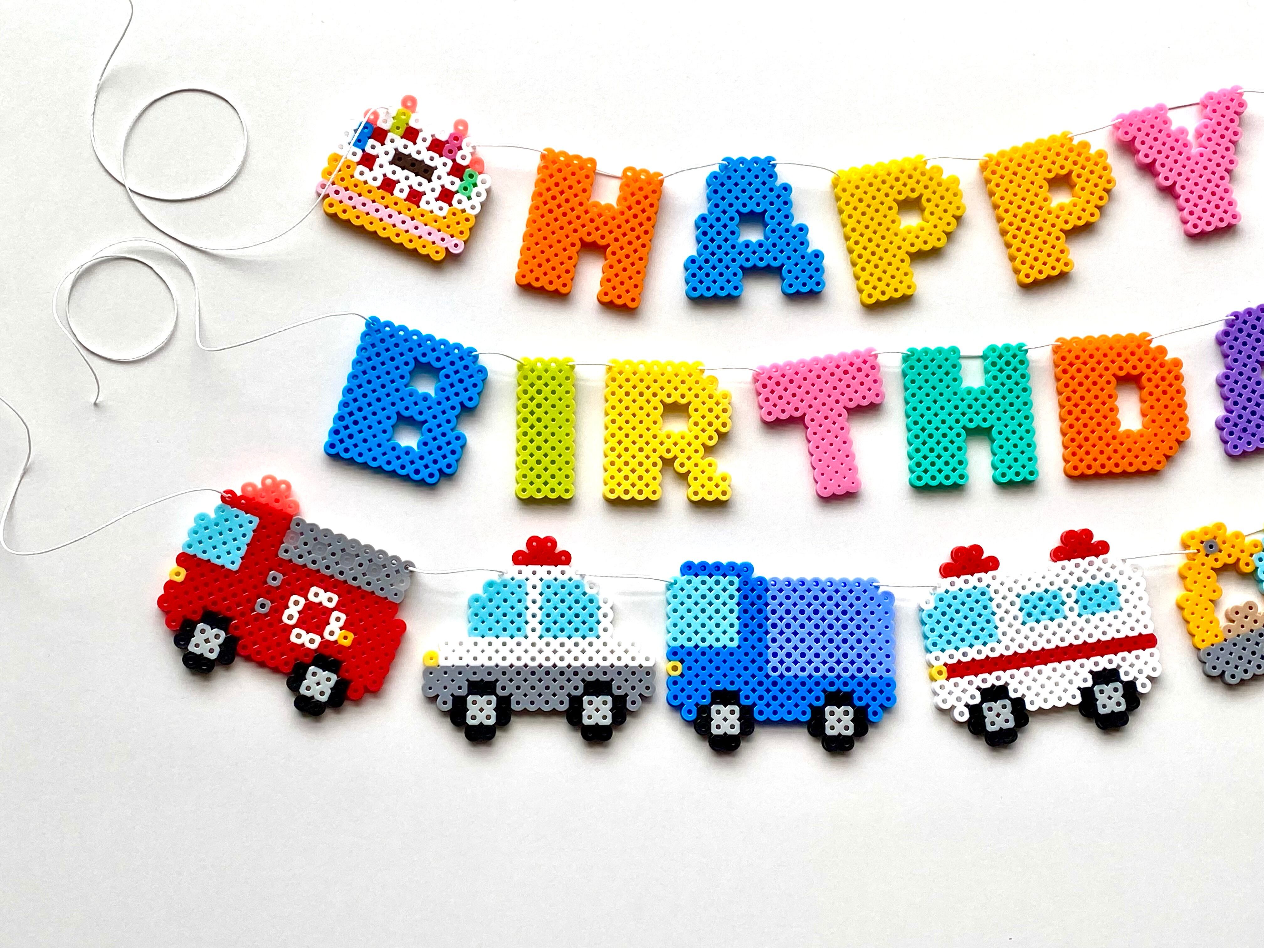 このガーランドは、働く車をテーマにした可愛らしいデザインが特長で、特別な誕生日の瞬間を盛り上げるためにぴったりのアイテムです。