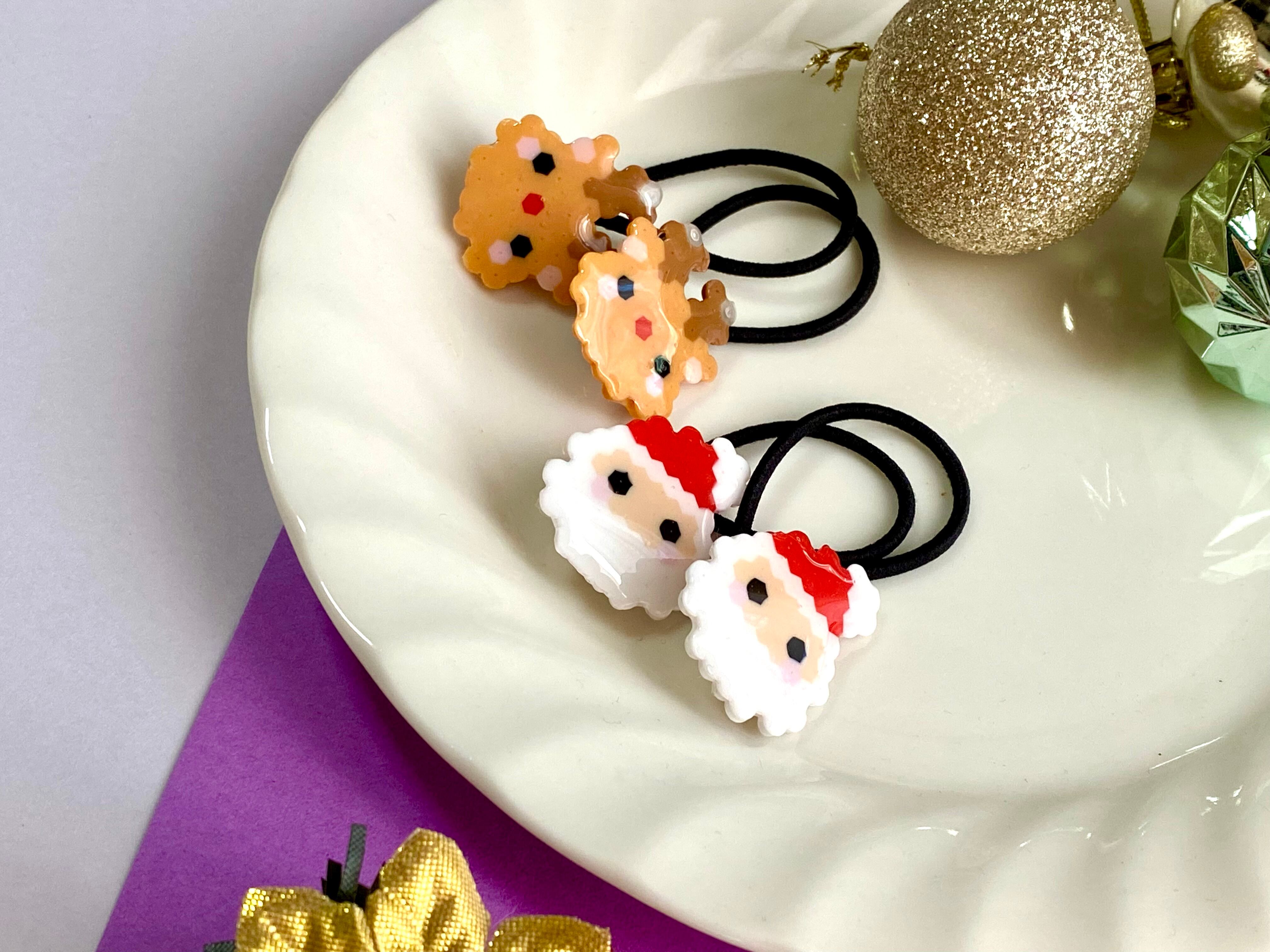 アイロンビーズて作ったクリスマスにぴったりなサンタクロースとトナカイのヘアゴムです!