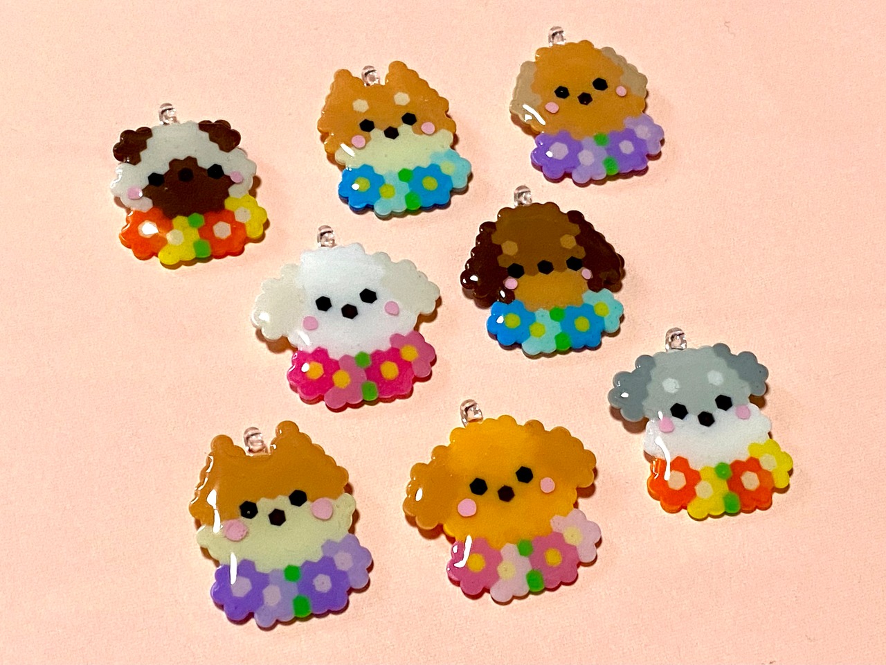 アイロンビーズとレジンで作られた、ピカピカかわいい花輪ワンちゃんのキーホルダーです!愛らしい子犬のデザインは、あなたの毎日を明るく彩ります。スマホのストラップやカバンのチャームとしてもおすすめのアイテムです!