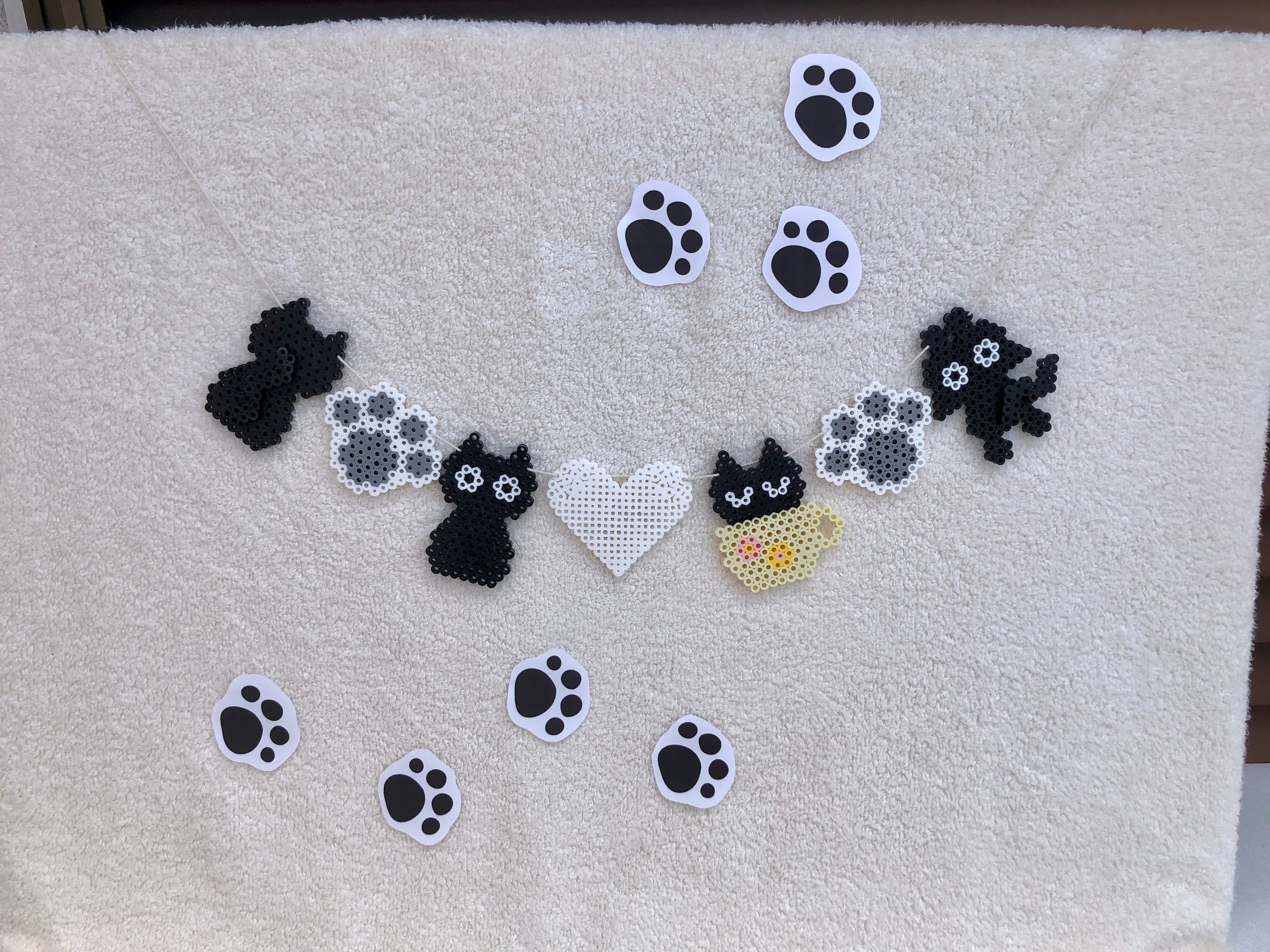 紐にぶら下がっていたり、カップに入っていたりと、いろいろなネコが可愛いガーランドができました、
