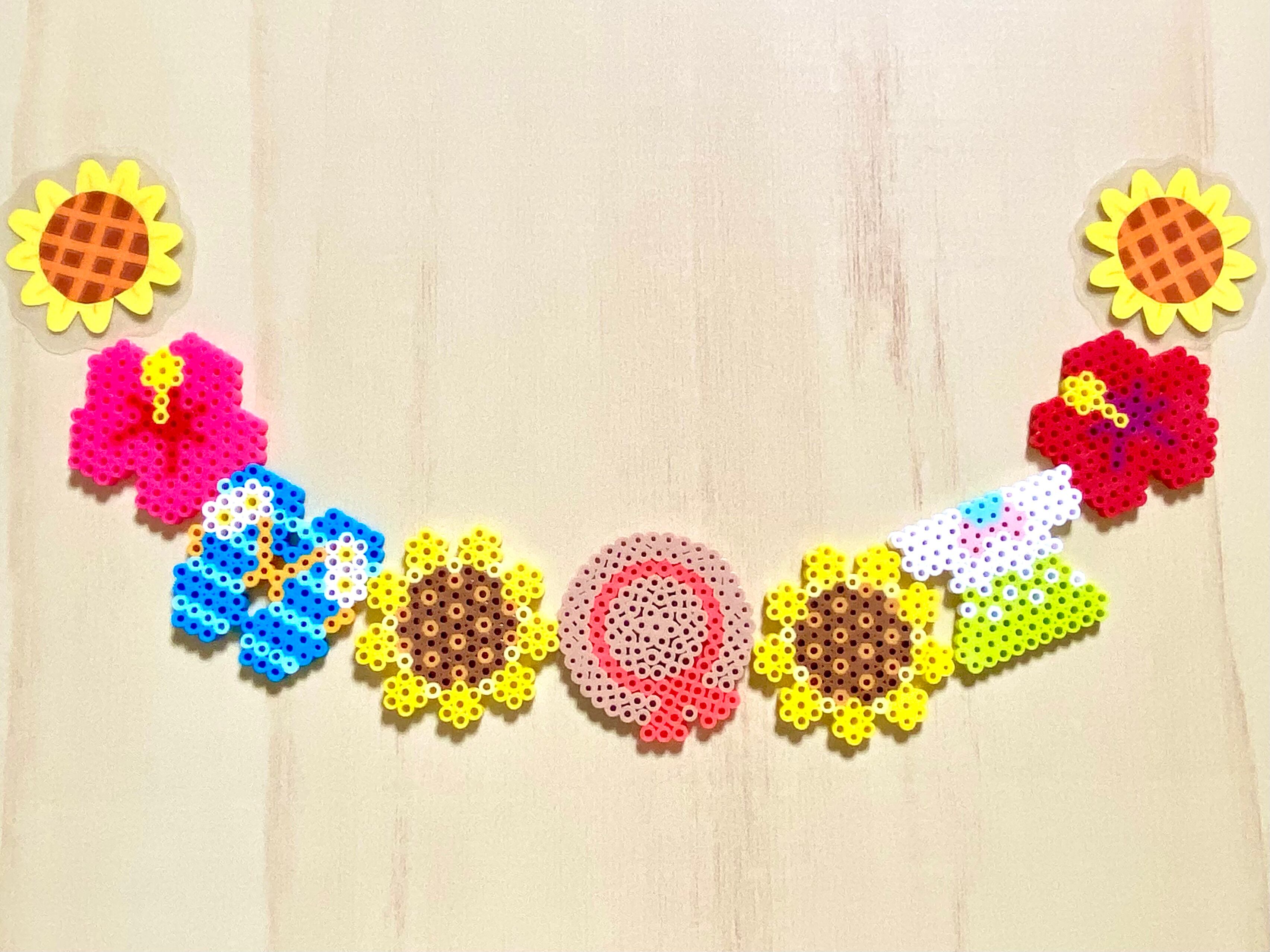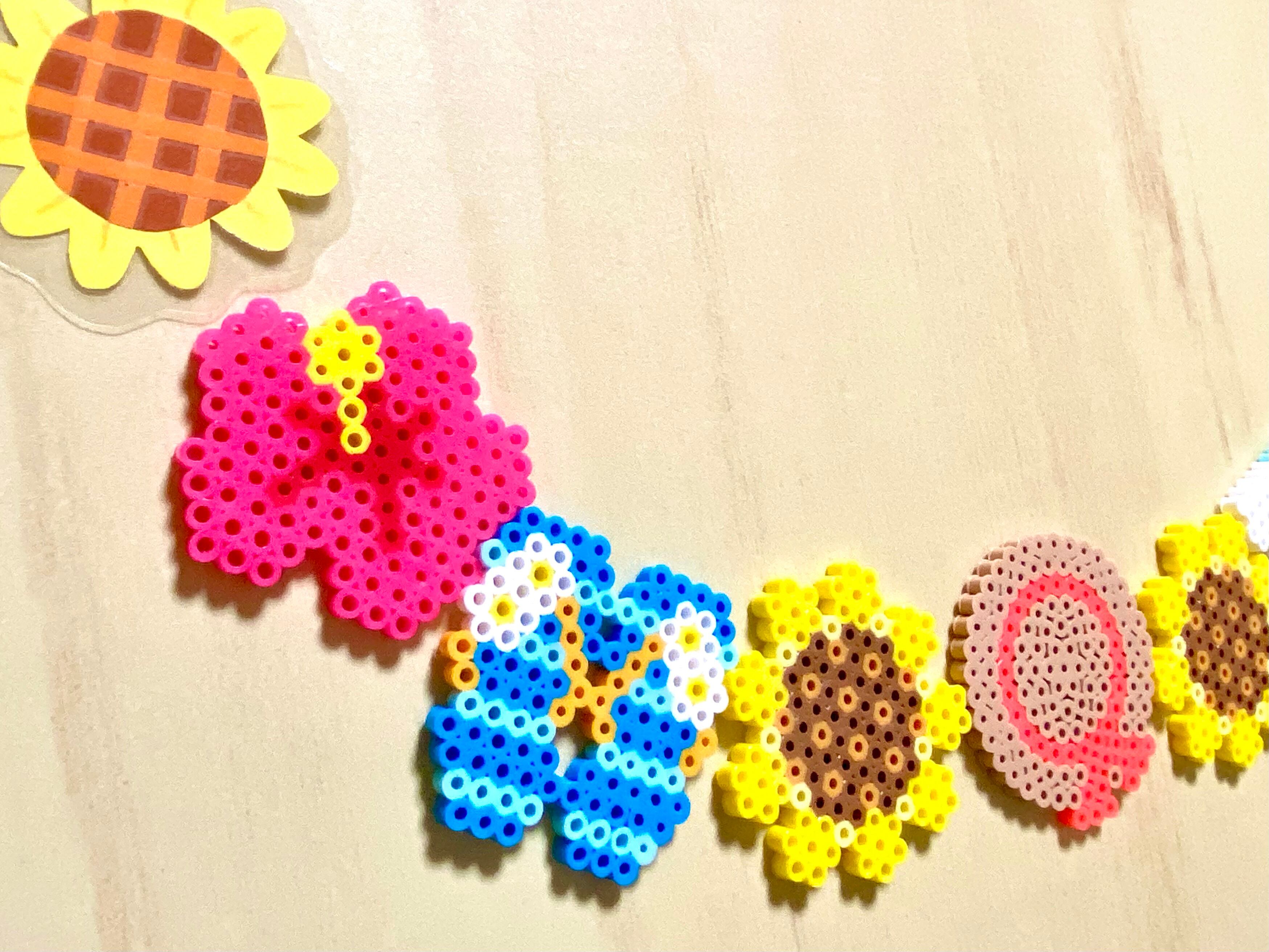アイロンビーズで夏らしいひまわりのガーランドを作りました。