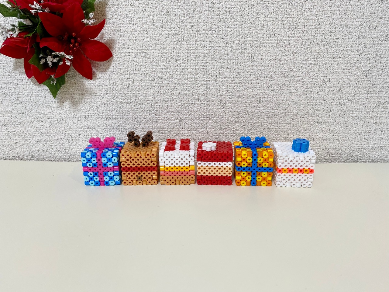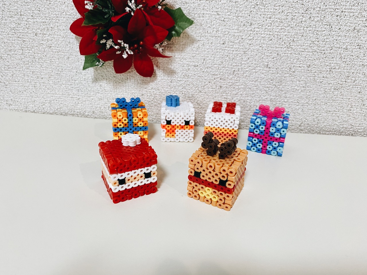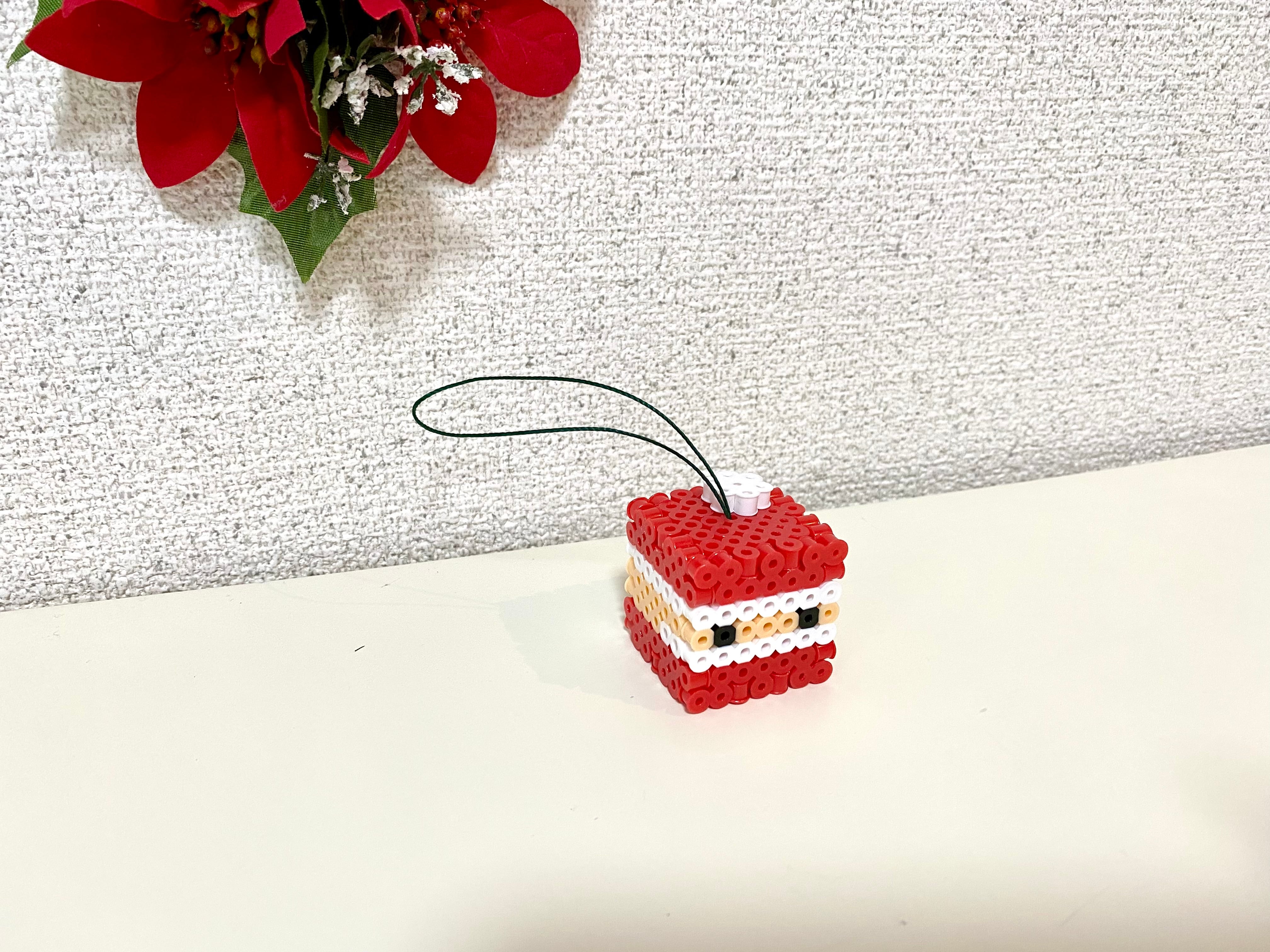 アイロンビーズで作った立体キューブのクリスマスオーナメントです。