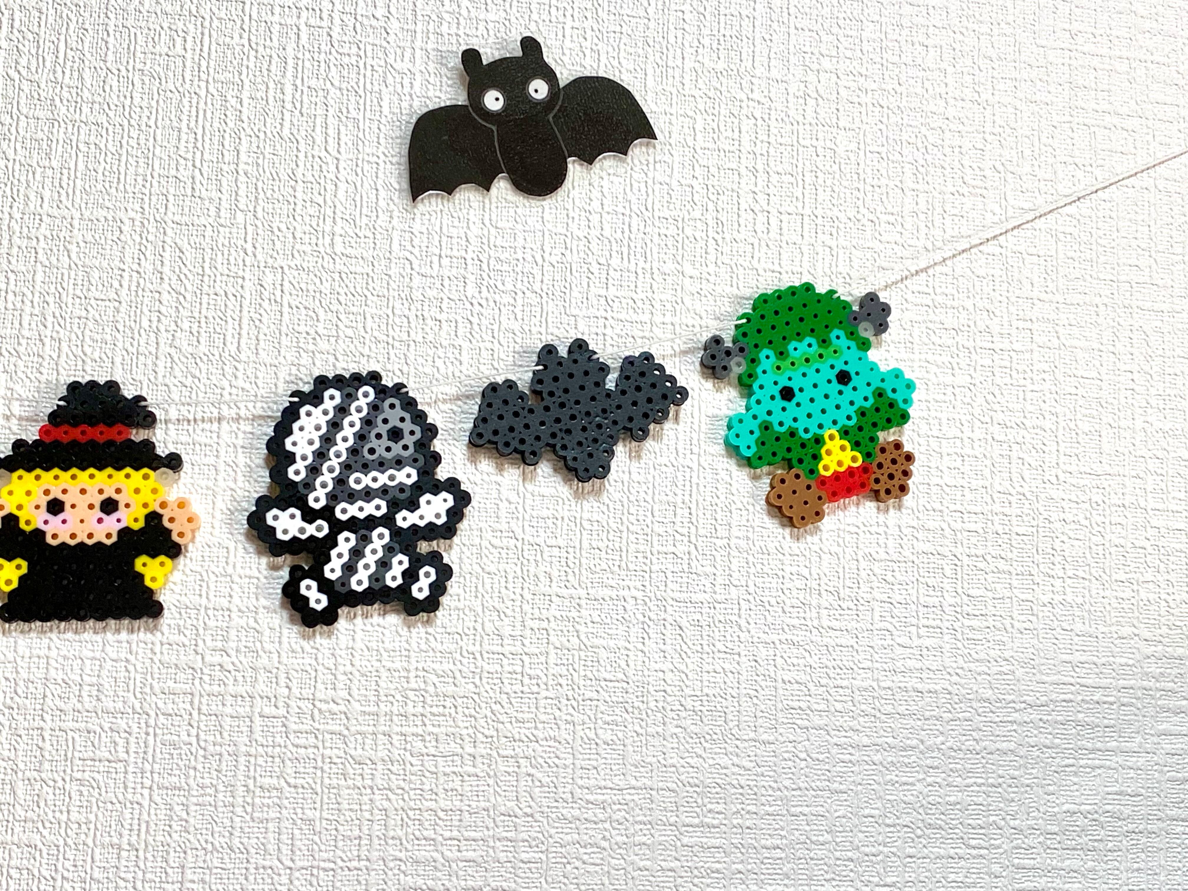 ハロウィンでお馴染みの怪物くん達がお部屋を楽しく飾ってくれるアイロンビーズで作ったハロウィンガーランドです。