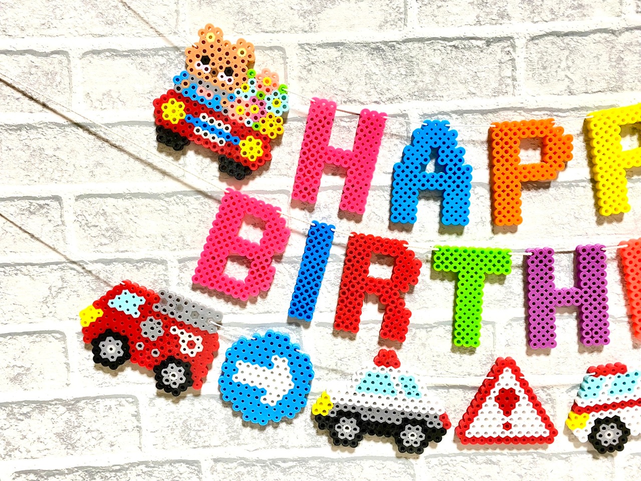 乗り物が大好きなお子様に喜んでいただけるお誕生日のガーランドを作りました。