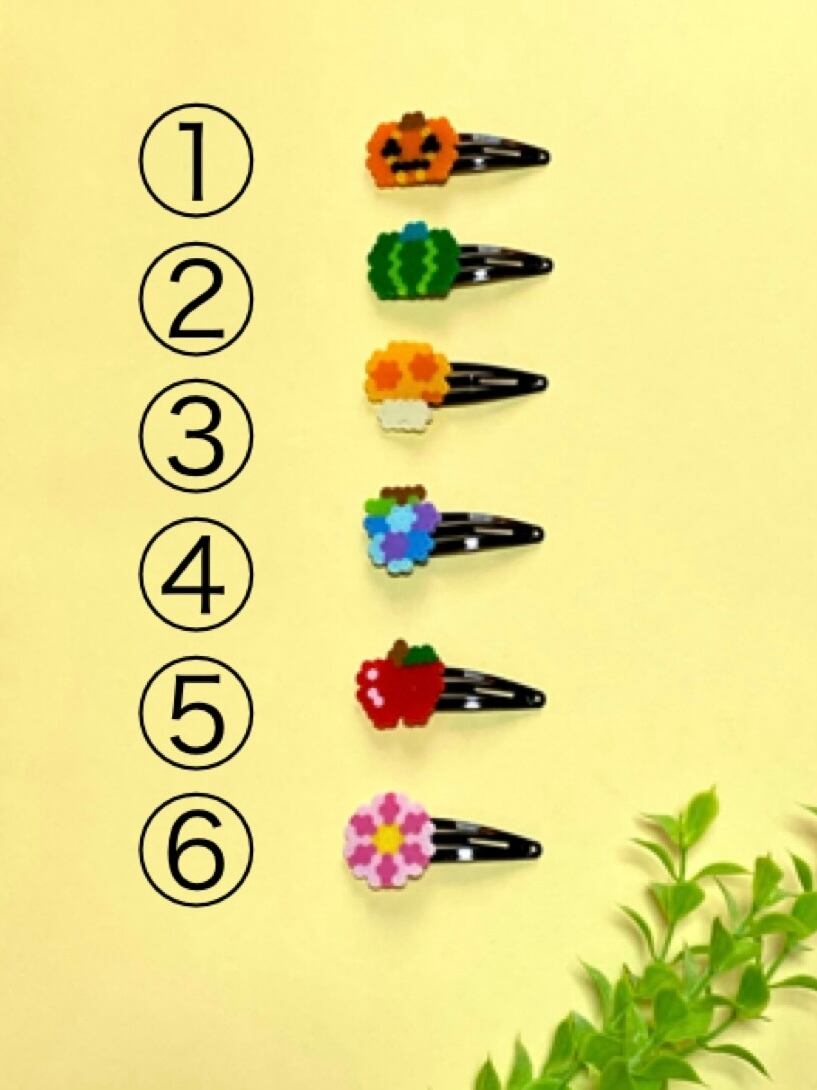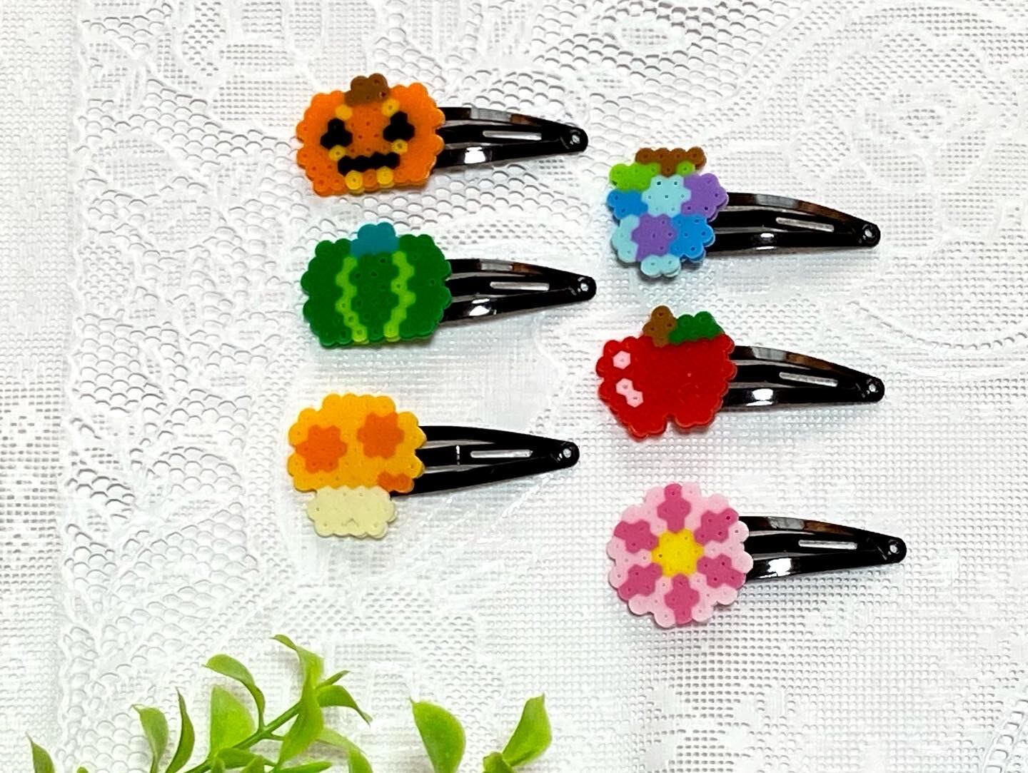 小さなアイロンビーズで作った髪飾り、パッチンピンです。