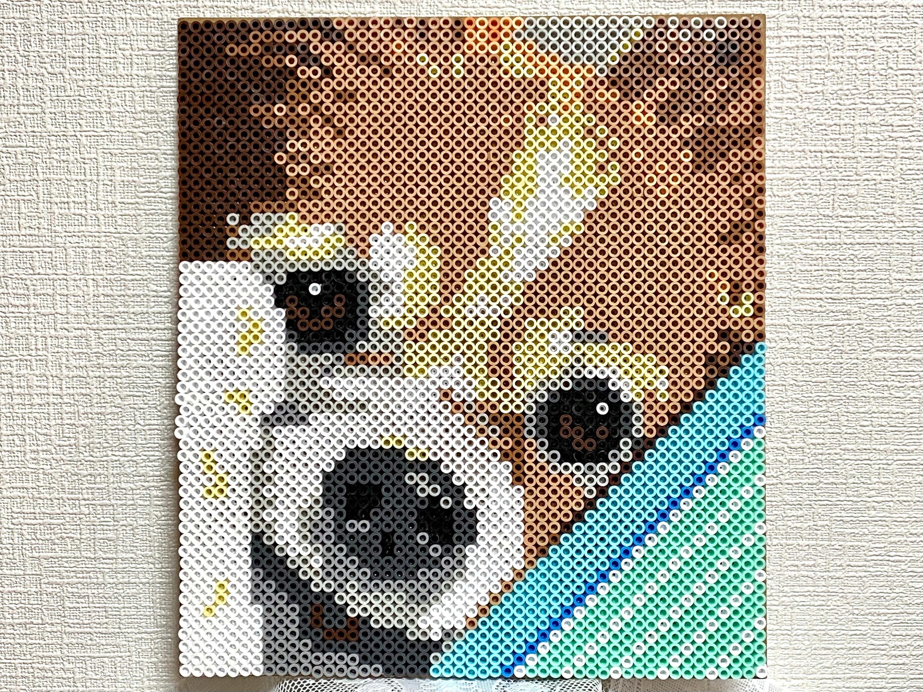 アイロンビーズはひとつひとつを丁寧に配置して作らせていただきます。手作り感があり、かわいいうちの子の独特な表情が表現された作品になります。