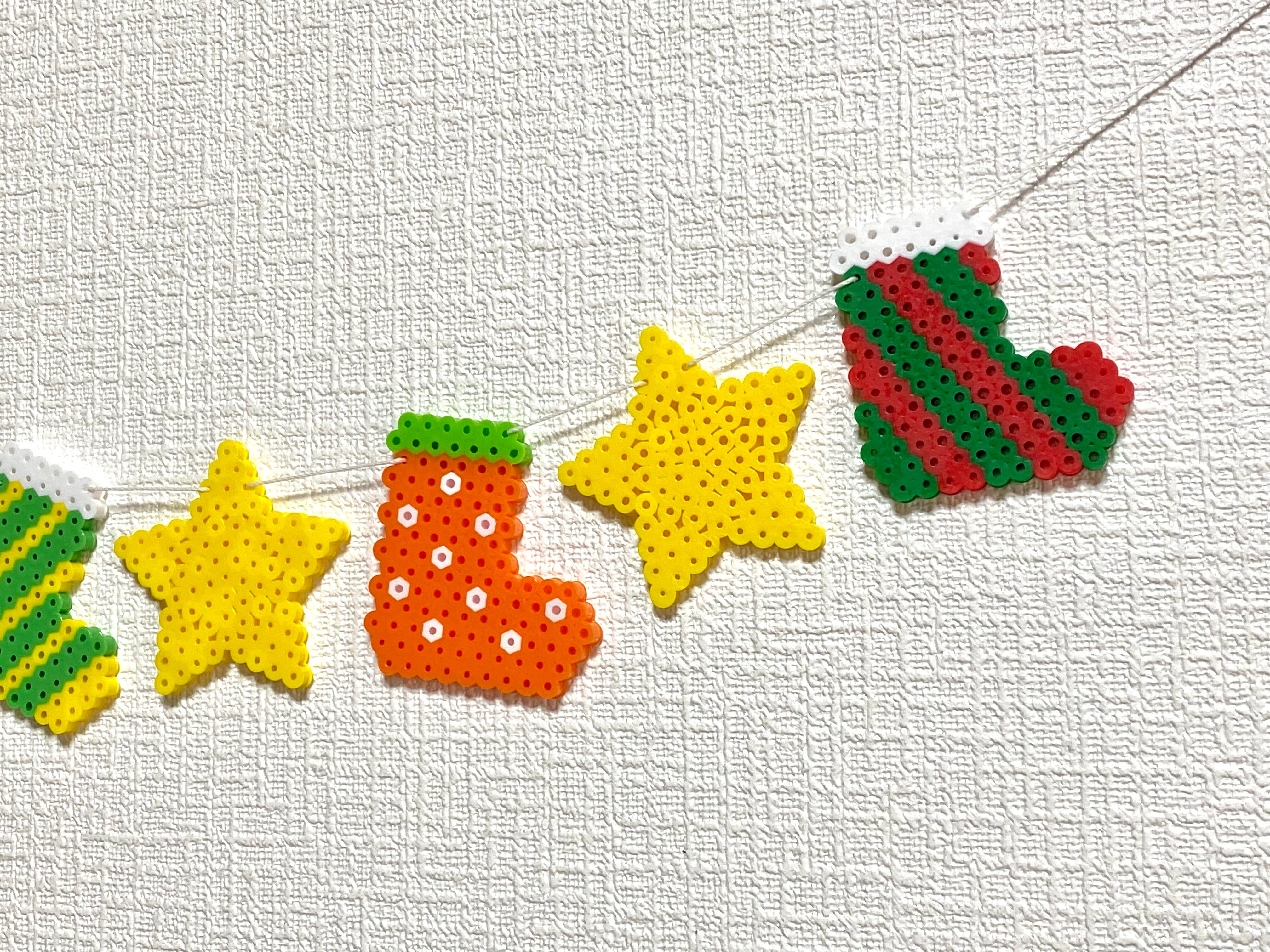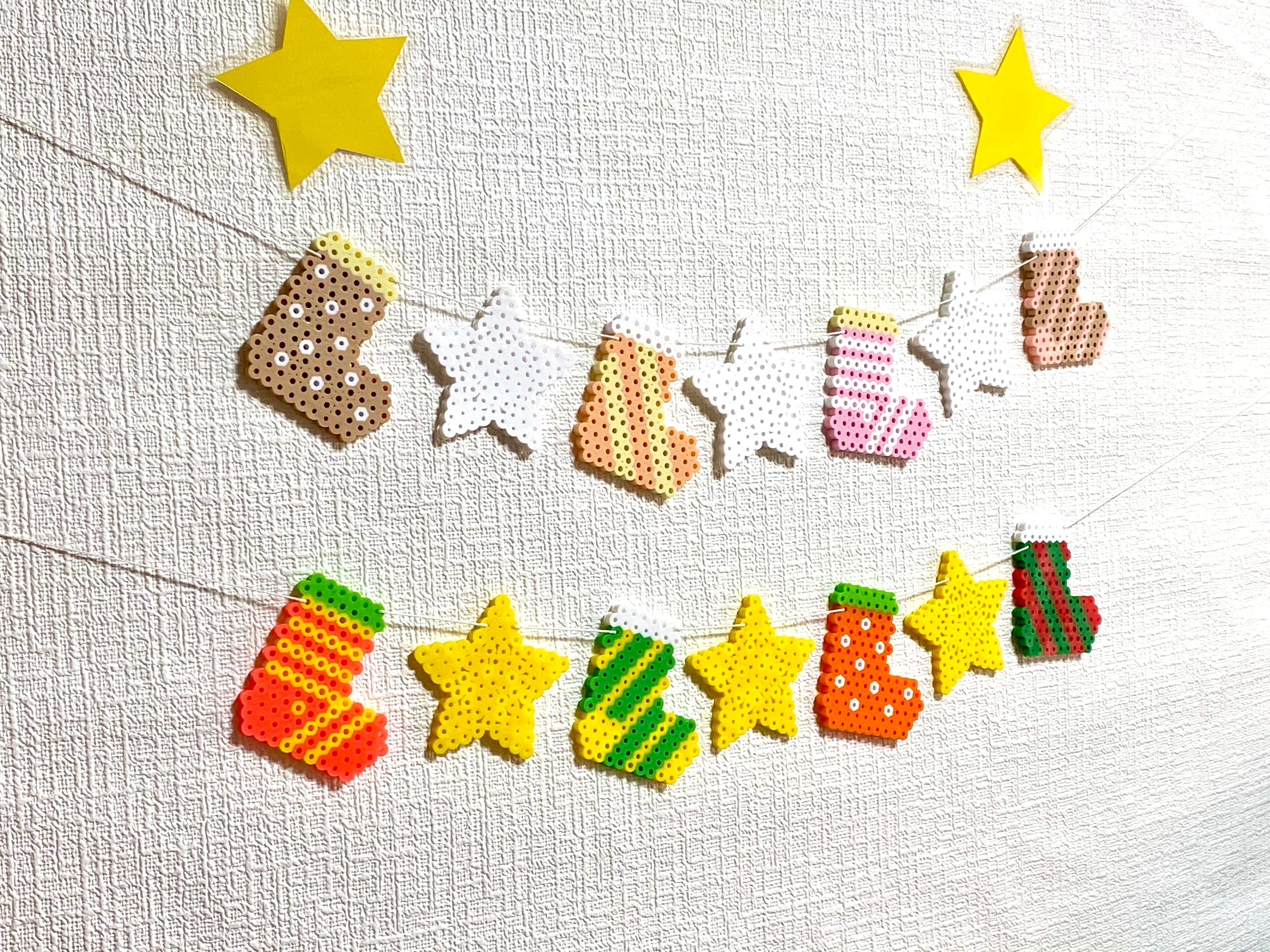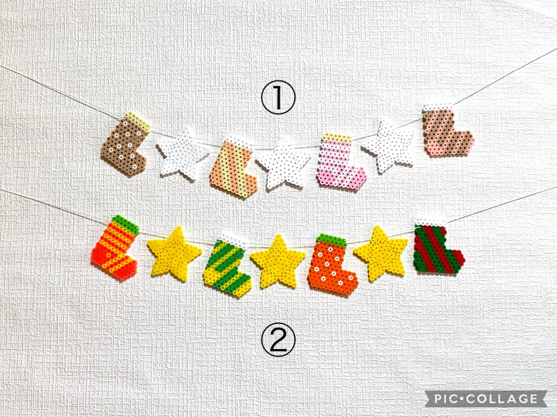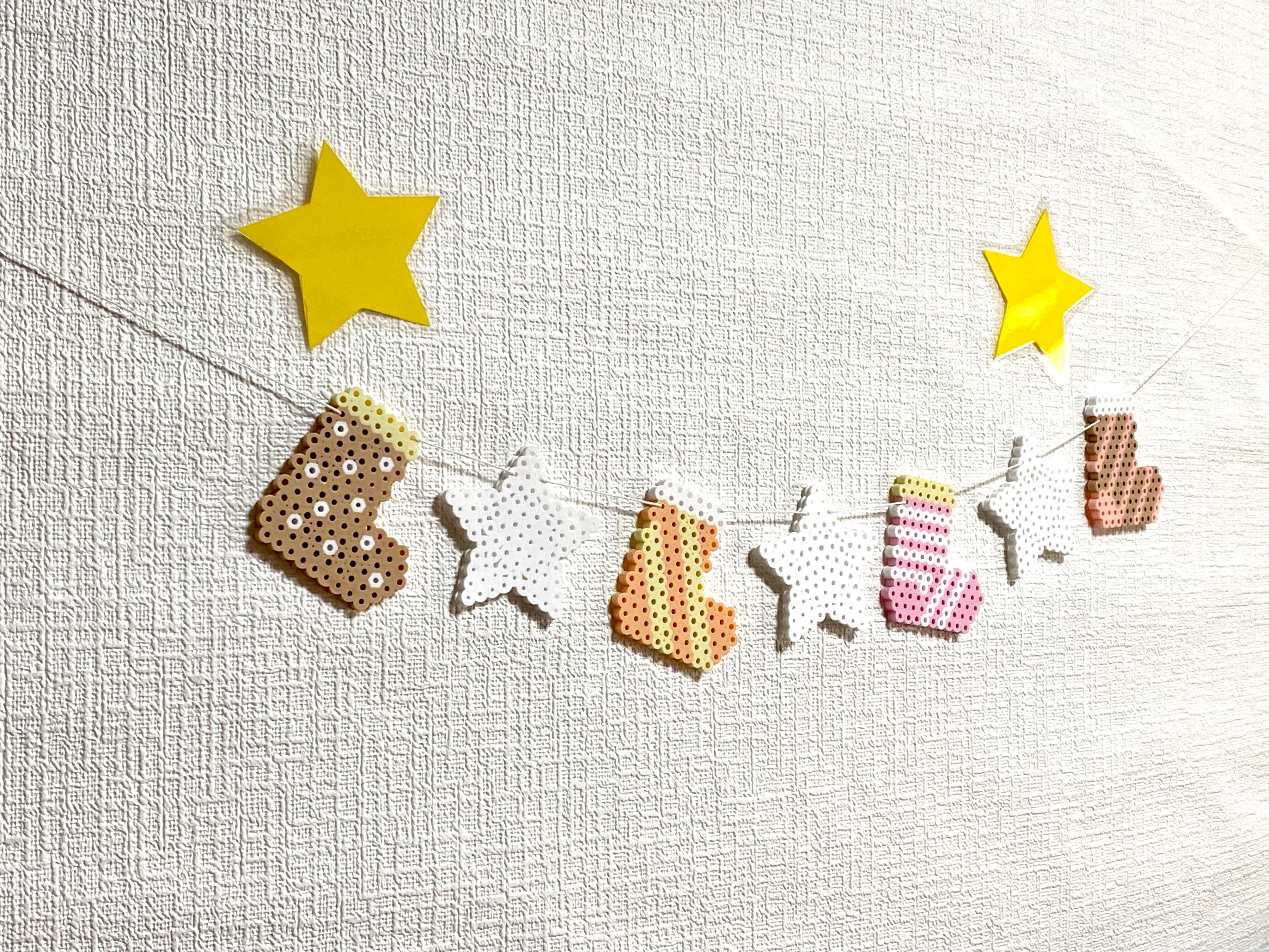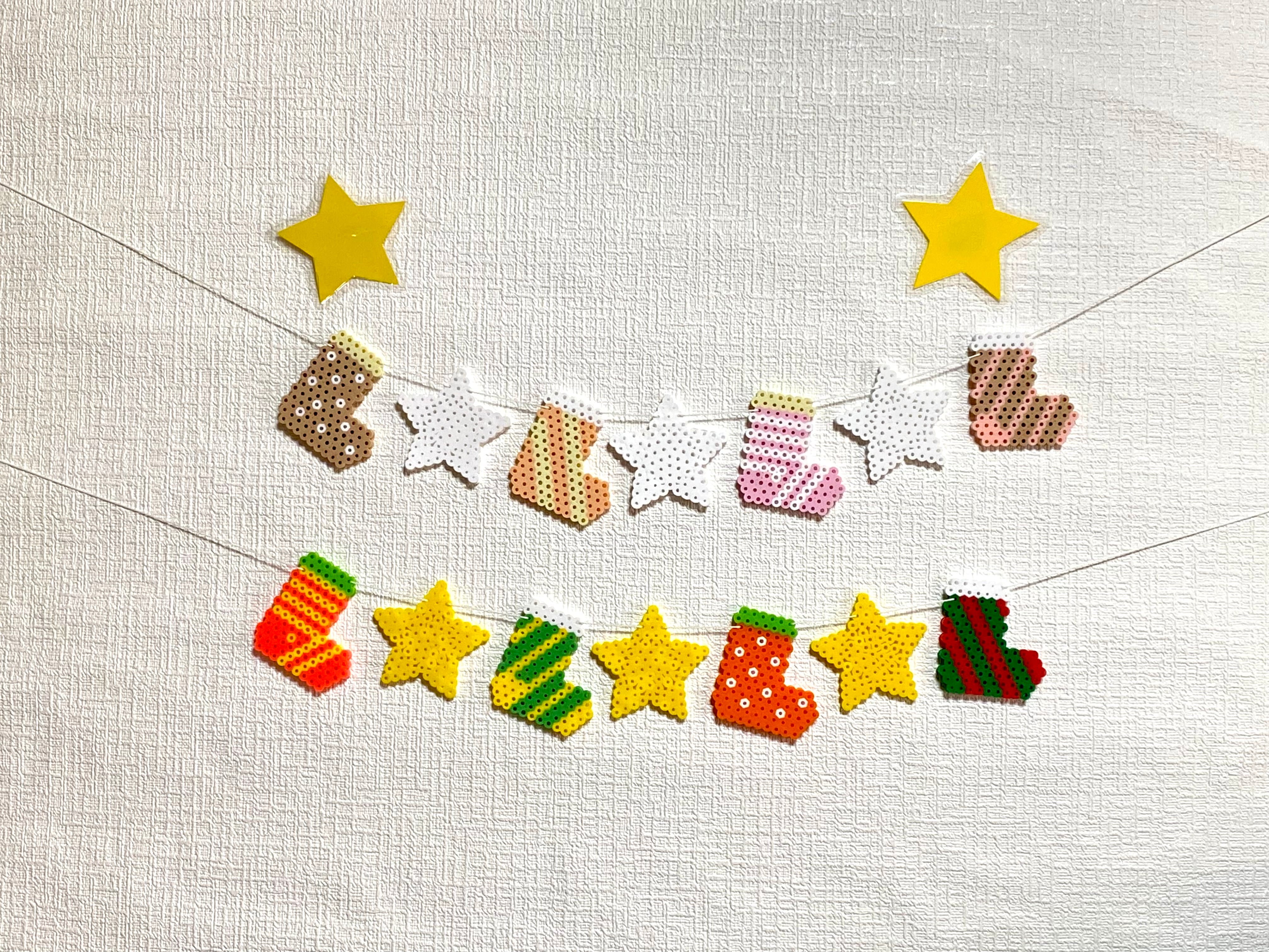 今回は模様がかわいいくつ下のガーランドを2種類作りましたので、お好きなデザインをお選びください。