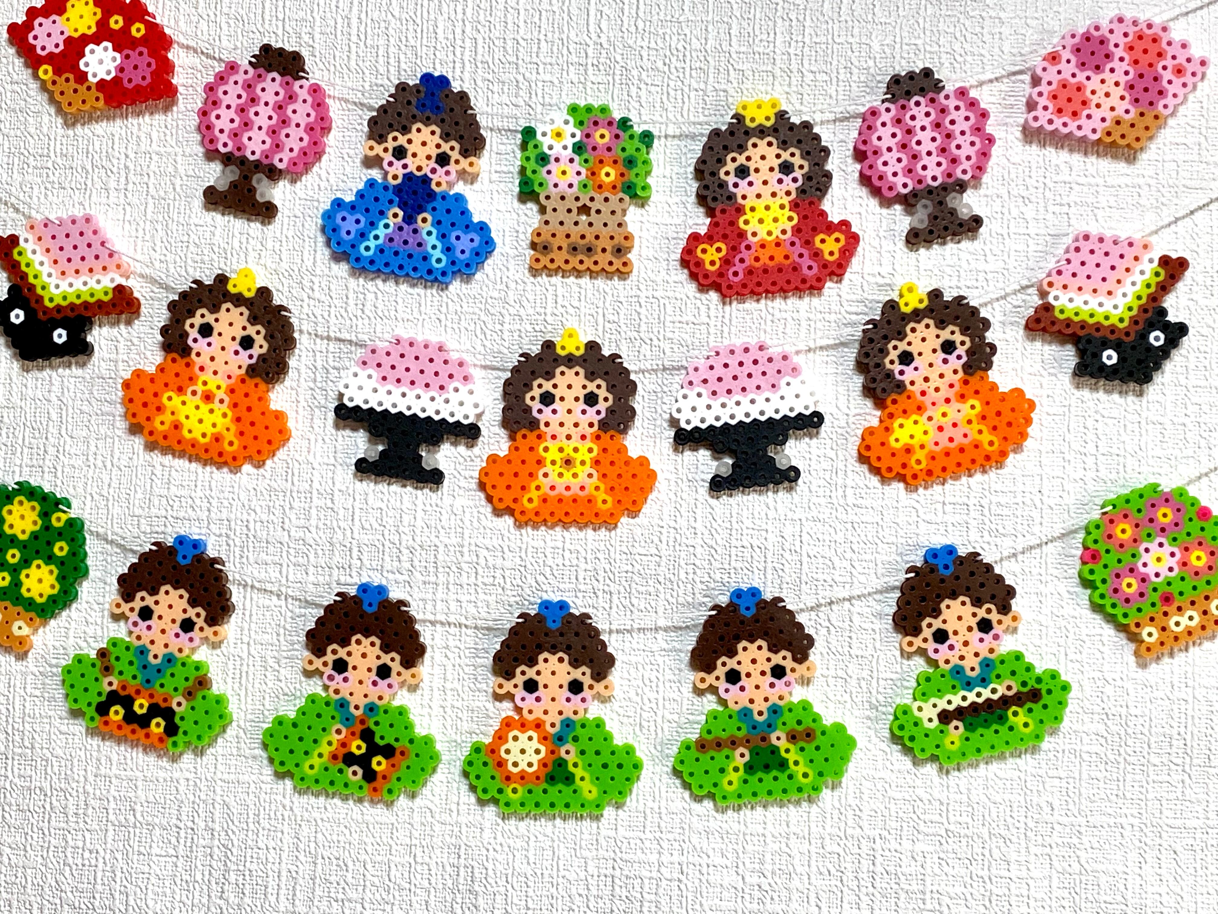 3月の桃の節句に飾っていただける、ひな人形のガーランドをつくりました。