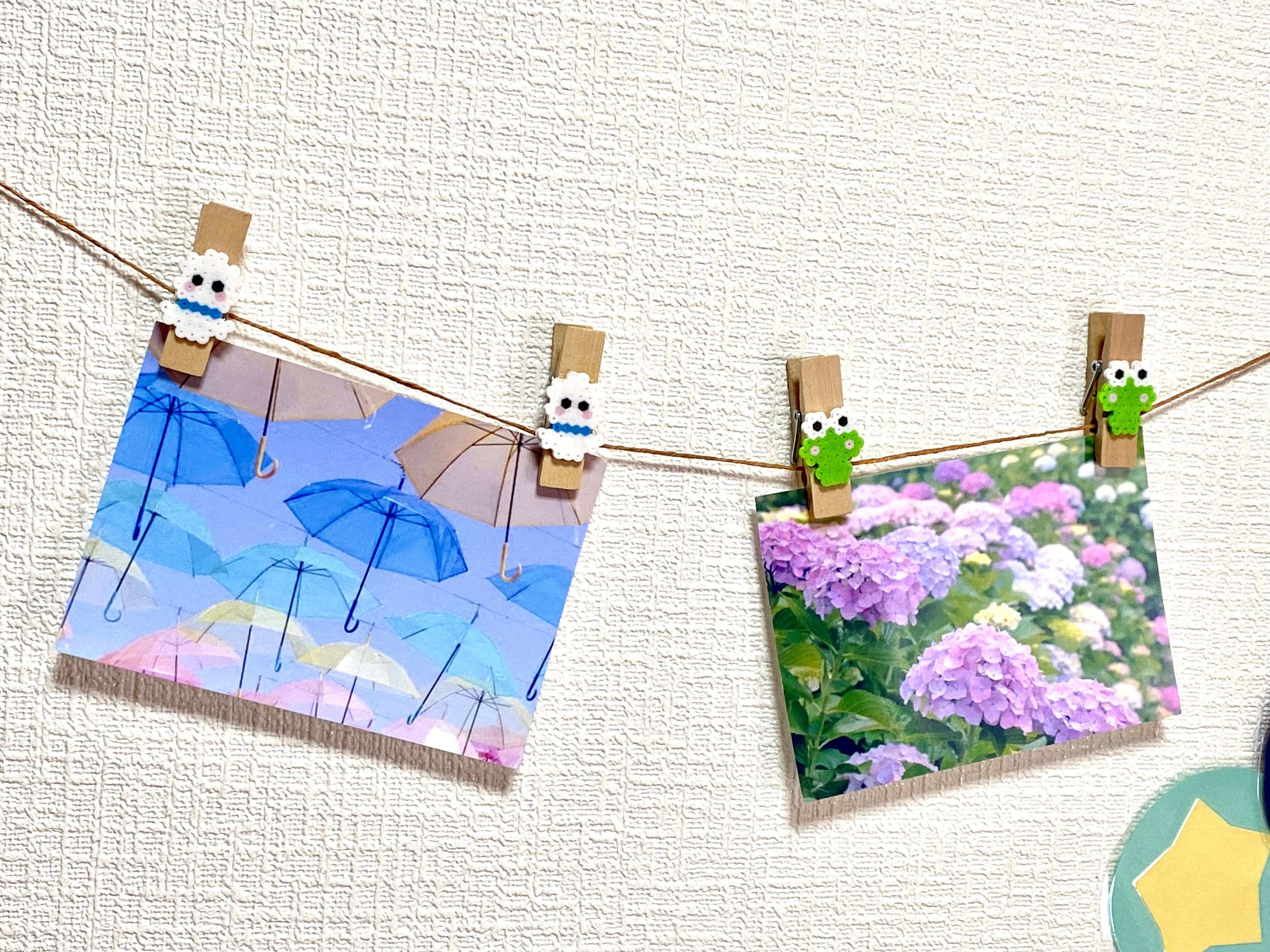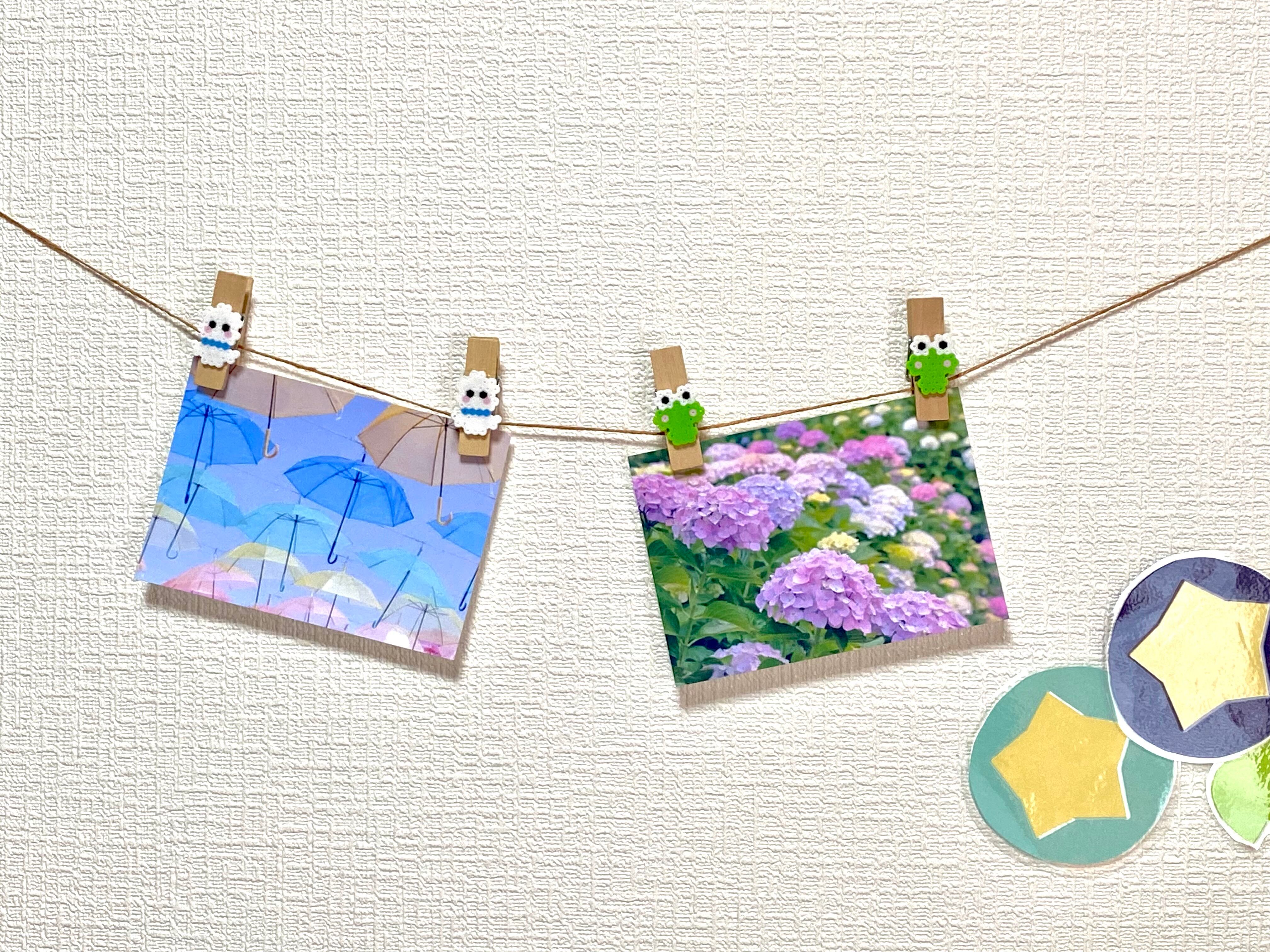 雨の日で沈みがちな気分を明るくする梅雨のシーズンにぴったりなウッドクリップです。
