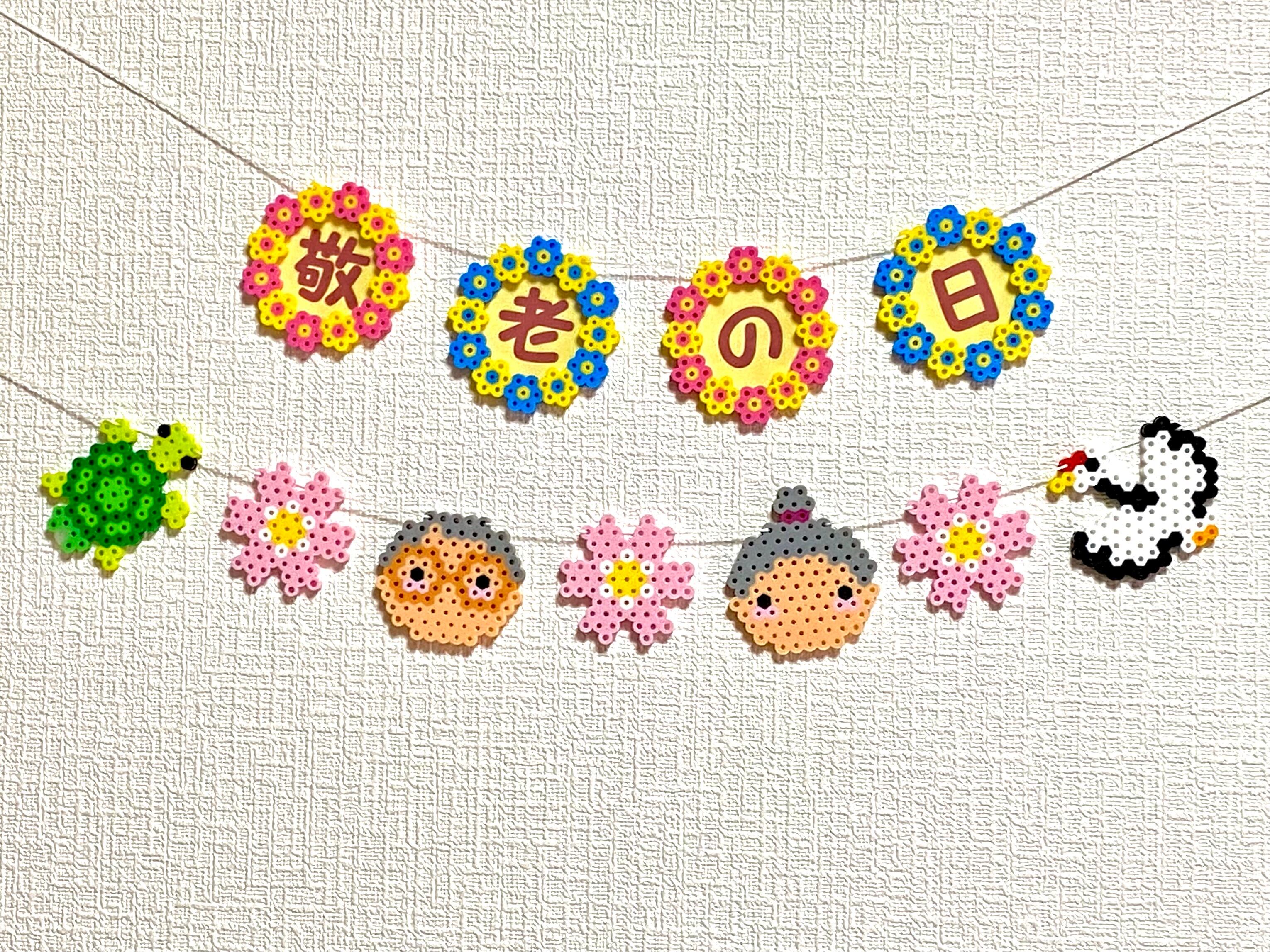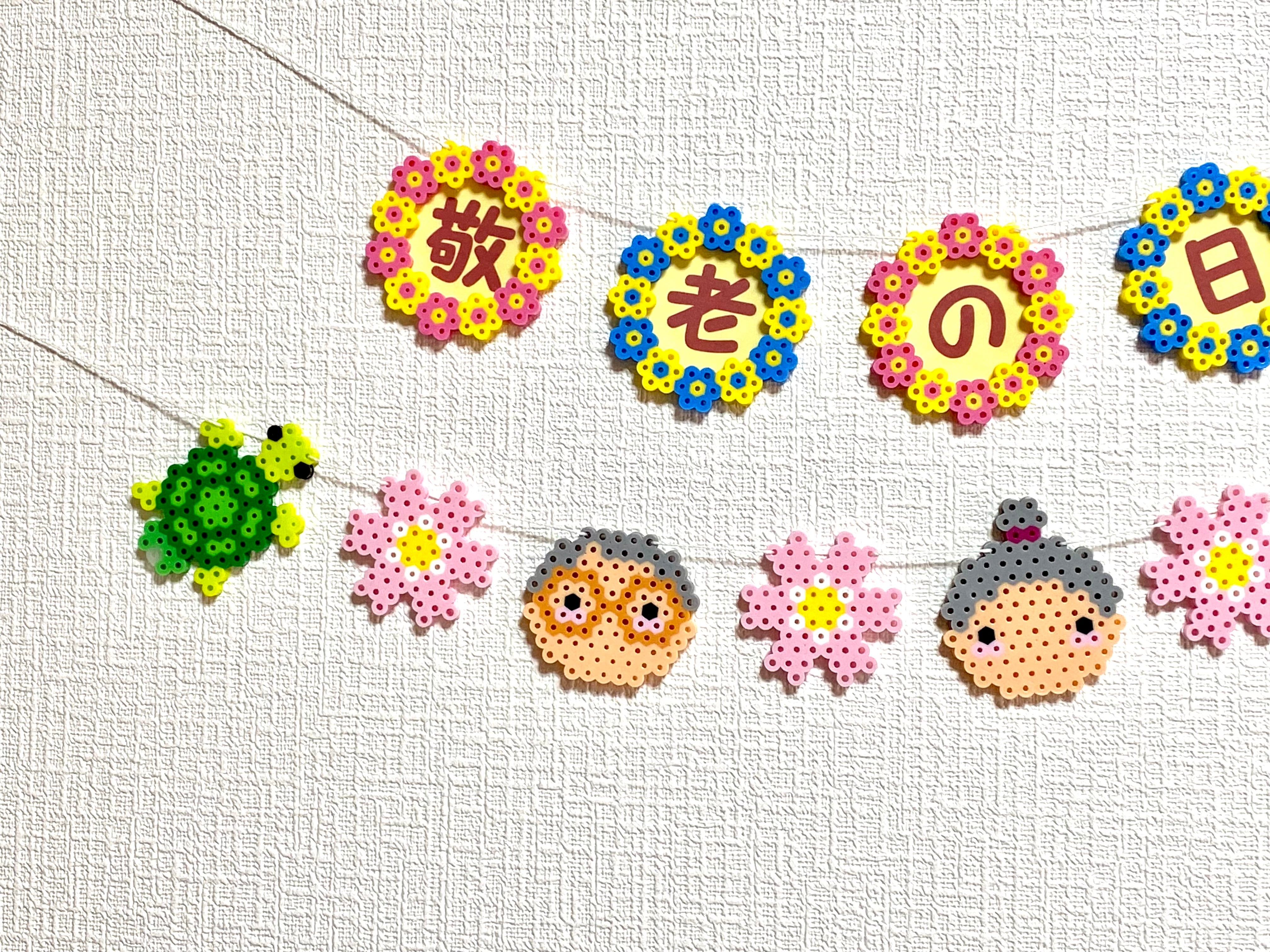 敬老の日に飾っていただけるアイロンビーズのガーランドを作りました。