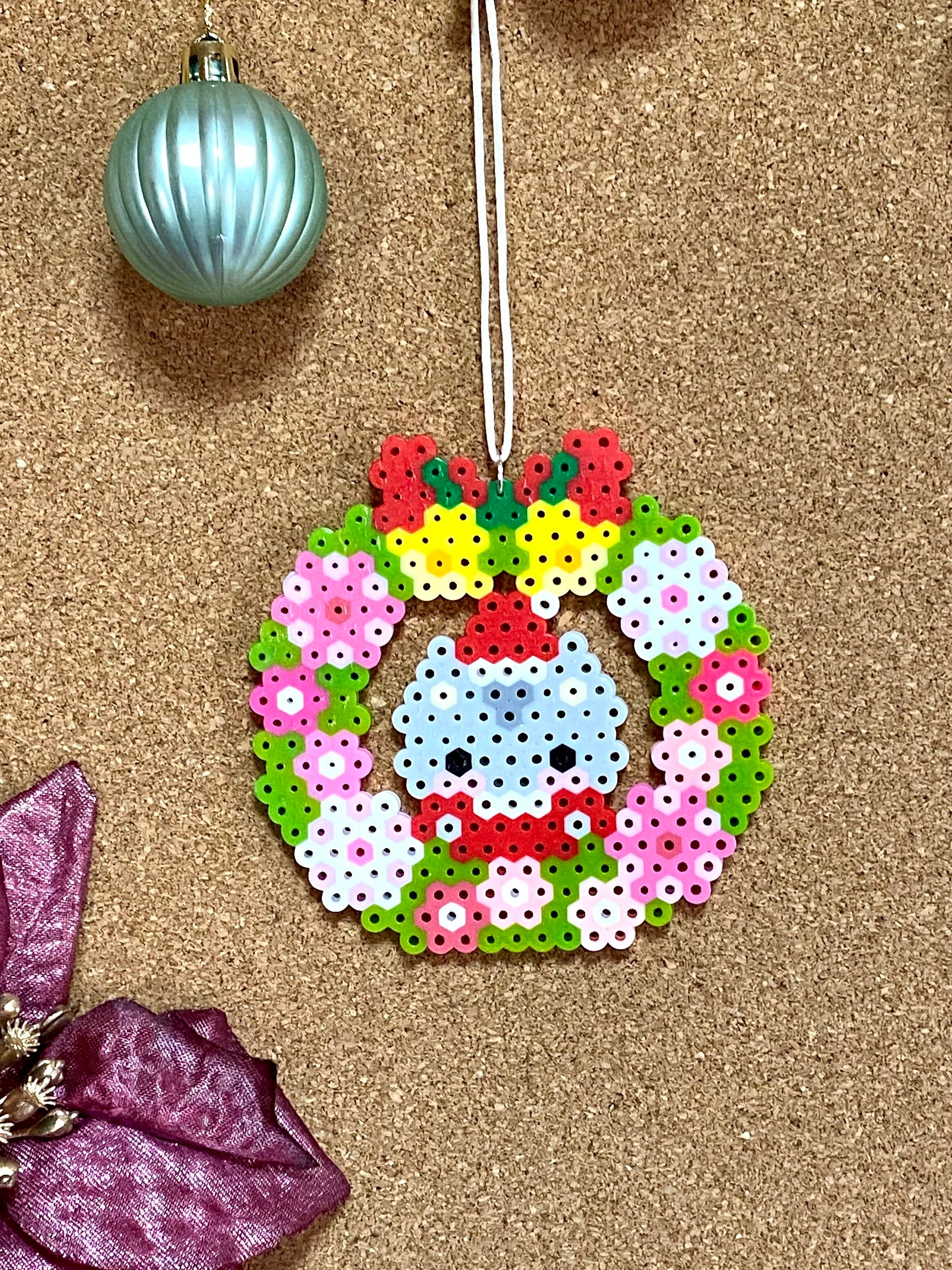 アイロンビーズで作ったクリスマスのリースです。
